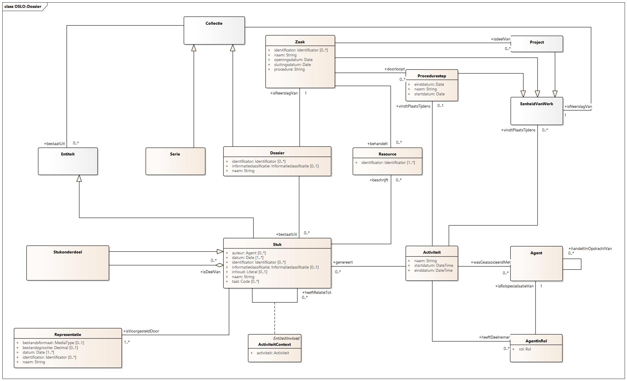- Voor deze entiteit zijn de volgende eigenschappen gedefinieerd: bestaat uit, identificator, informatieclassificatie, is neerslag van, naam.