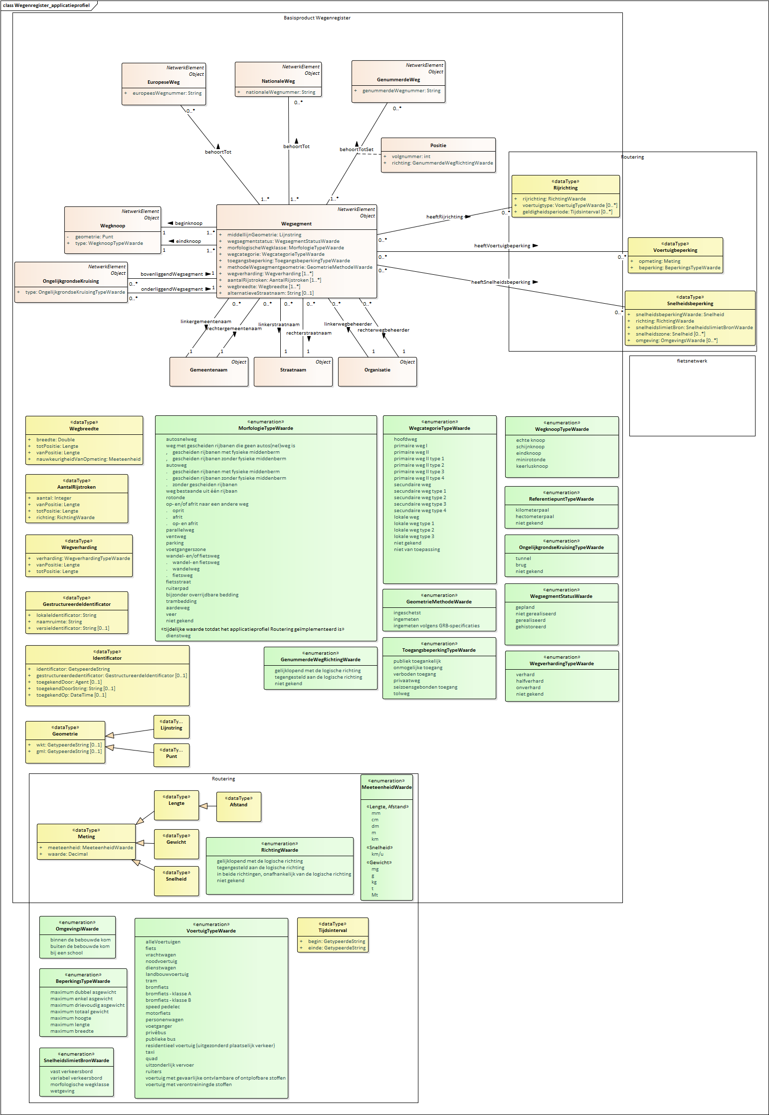 VoertuigTypeWaarde | 0...* | Het type voertuig waarvoor deze rijrichting geldt. | Het basisproduct Wegenregister spreekt enkel over de rijrichting voor het voertuigtype auto. |
